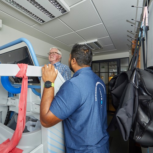Hos os vægter vi tryghed og god stemning meget højt. Og vi kender vigtigheden af, at vores deltagere går til holdtræning og får lov til at træne sammen med andre, der har samme skavanker som dem selv.